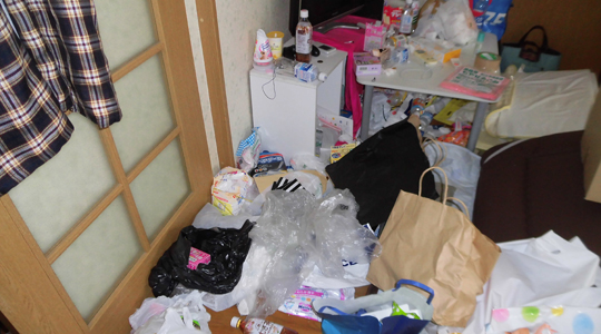 引っ越しや退去はしないので、「不要な物やゴミを片付けて普通に生活出来るように」とご希望です。